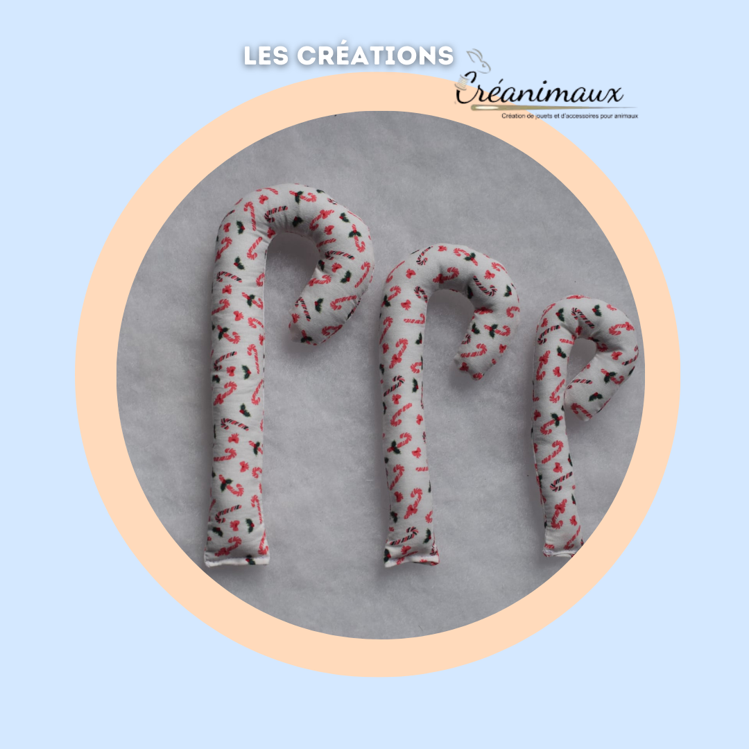 Offrez à votre chat ou petit chien un jouet aussi mignon qu’un bonbon de Noël ! Fabriqué à la main par Créanimaux, créatrice partenaire de Matoo & Patoo, cette canne à sucre douce et colorée est un jouet artisanal, sûr et plein de charme. Son design aux couleurs de Noël apporte une touche festive à chaque moment de jeu.